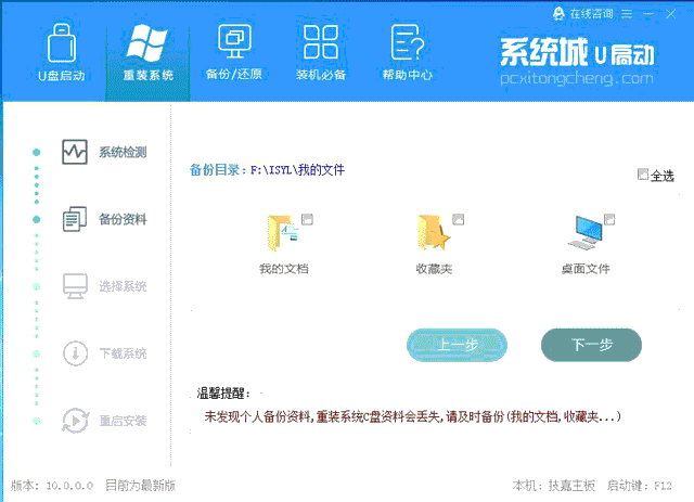 打开重装系统精灵,根据需要是否选择需要备份的文件,如下图所示。