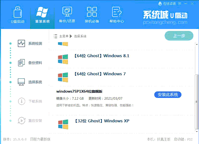 系统会根据您的电脑配置为您推荐一个合适的系统,当然你也可以自由选择,如下图所示。