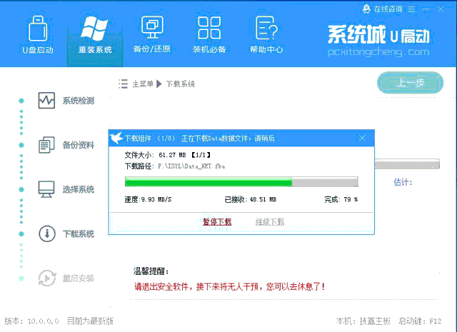 系统会自动下载PE安装环境,几分钟就好,此时你可以再点只烟耐心等待,如下图所示。
