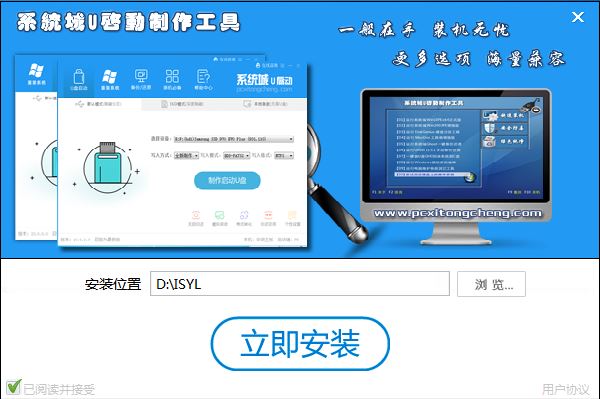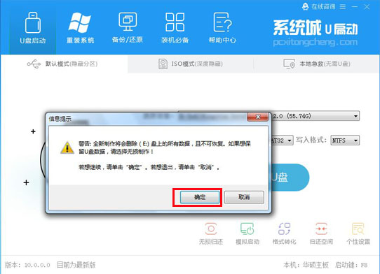 耐心等待系统城二合一版制作工具对u盘。如下图所示