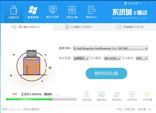 耐心等待系统城二合一版制作工具对u盘写入系统城UPE相关数据的过程。如下图所示