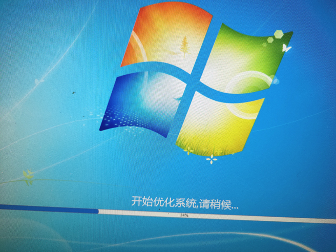 第一步、首次进入桌面进入系统优化,请等待。