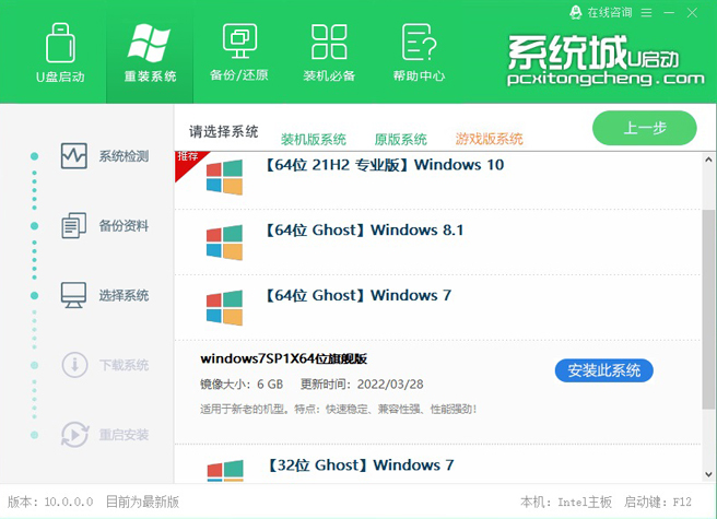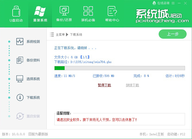 系统城U启动在线重装系统使用教程