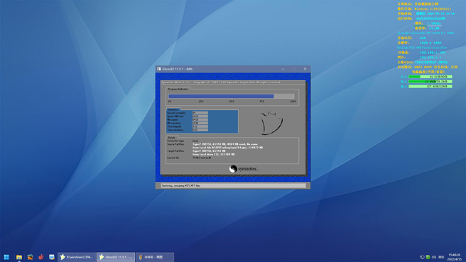 7、进入桌面后自动恢复win7系统,不用操作任何键,一切全自动安装。