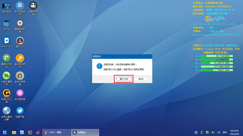 5、下载完win7系统正在PE引导,准备自动重启电脑